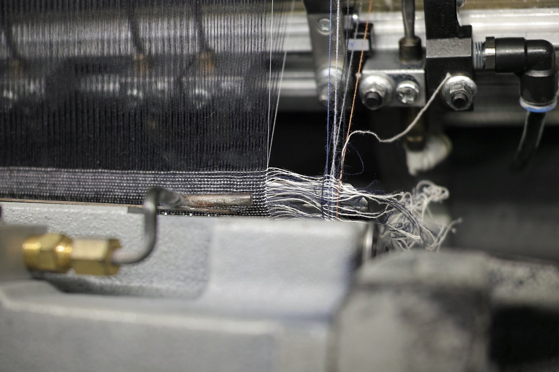 長きにわたって切磋琢磨し合ってきたものづくりパートナーの各社に相談し、協力いただきながら新たに構築された「ちぢみデニムルート」は、広島県福山市で「糸の染め」と「生地の織り」と「製品の洗い」を、びわ湖のほとりの滋賀県高島市で「糸と生地の加工」を、大分県国東市では「裁断」と「縫製」と「仕上げ」というように、3県7つの工場を行き来させて、ようやく完成に至りました。