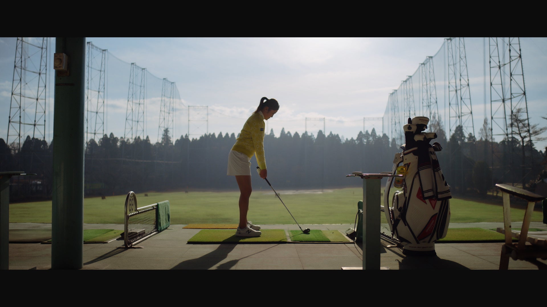 CM撮影は、稲見選手が子供の頃から日々通い続けている練習拠点「北谷津ゴルフガーデン」にて行われ、撮影前にはいつも通り朝食を食べリラックスした表情で撮影に臨みました。