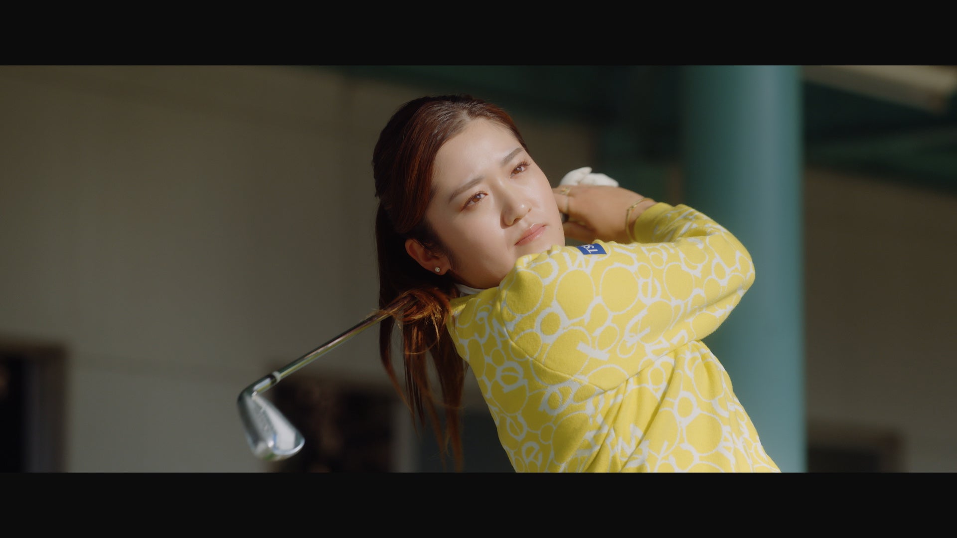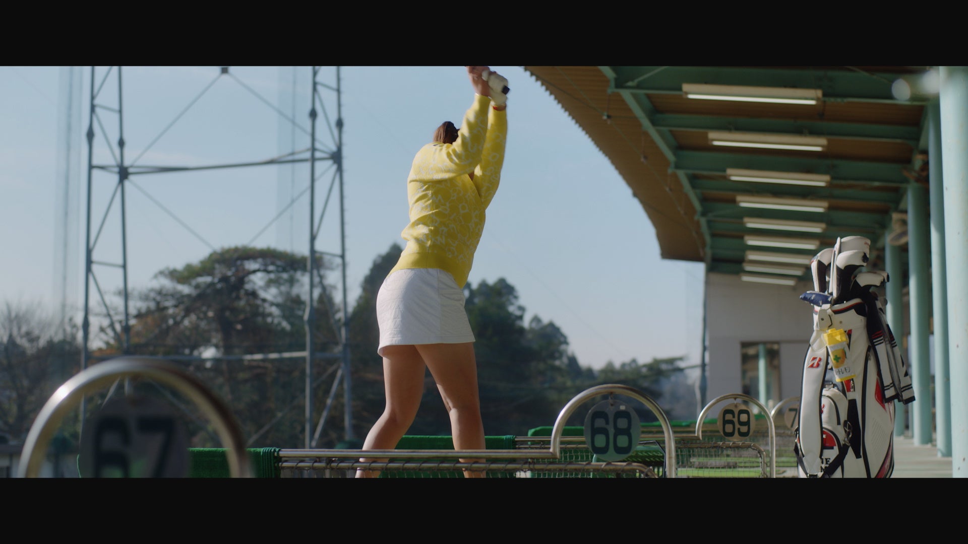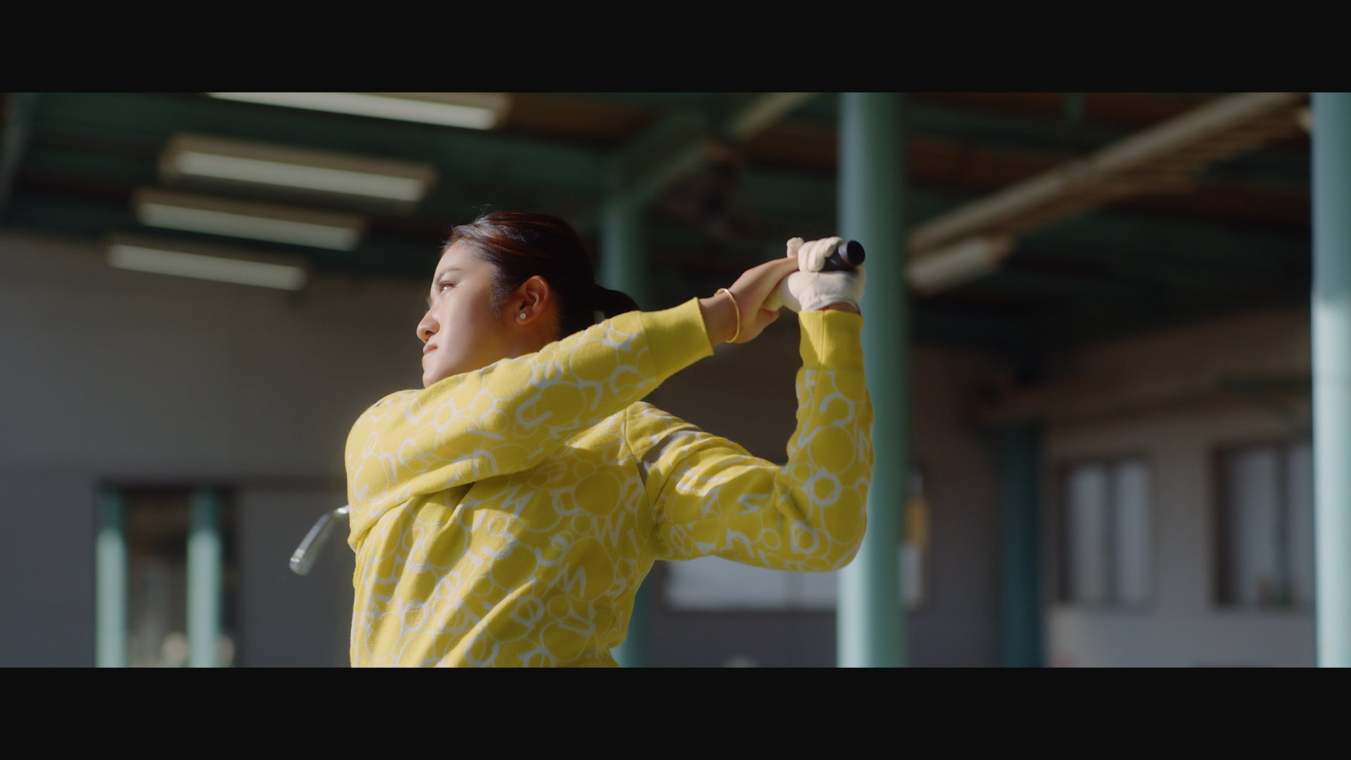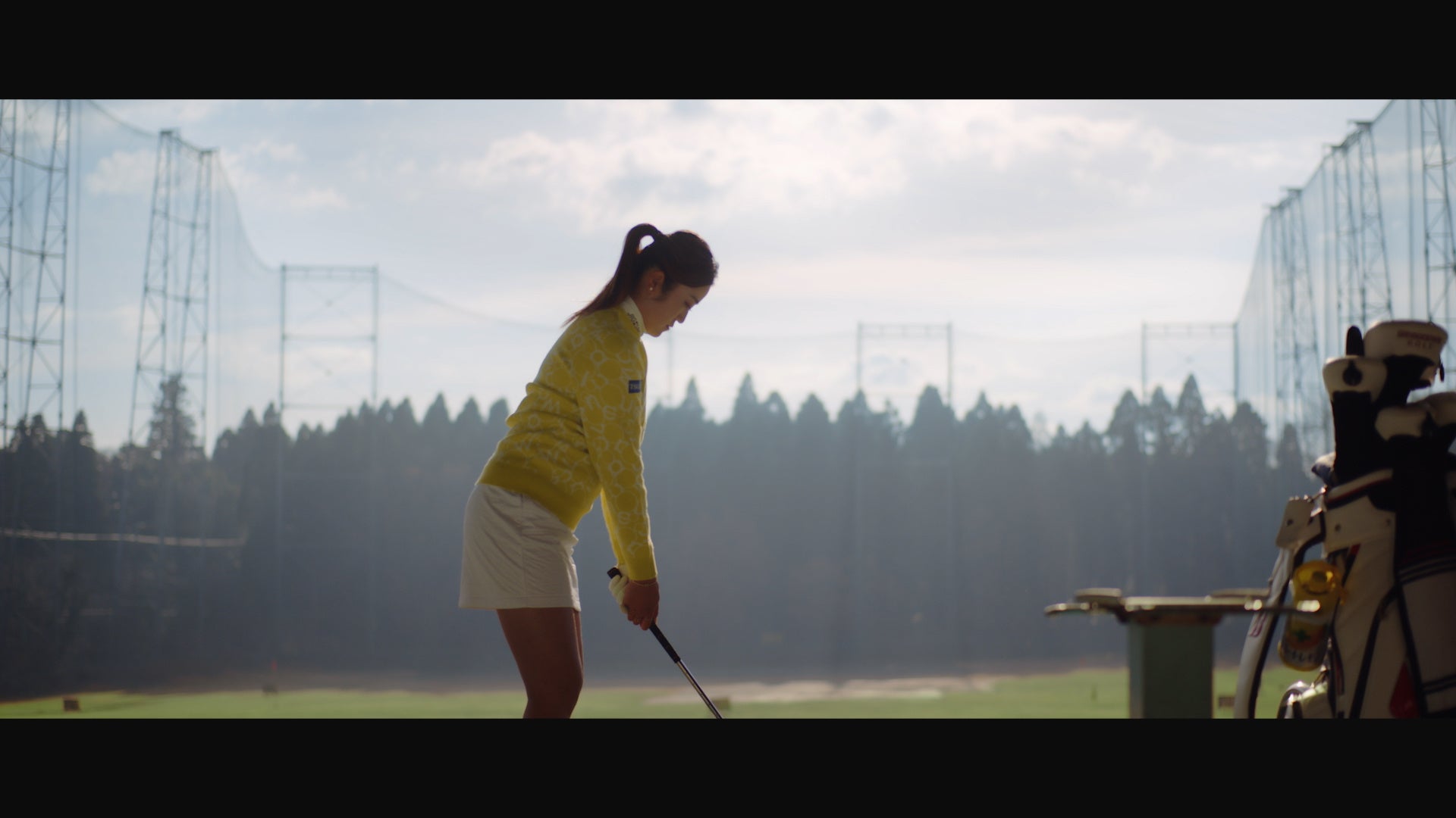 快晴に恵まれた練習場に、爽やかなレモンイエローの衣装に着替えて出てきた稲見選手からは、21歳とは思えないオーラが感じられ、スイングの撮影シーンではスタッフ一同息をのみました。
