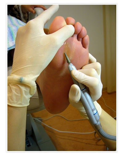 ④フレーザー(フットケアマシン)を使い、固くなった角質を処理します。
