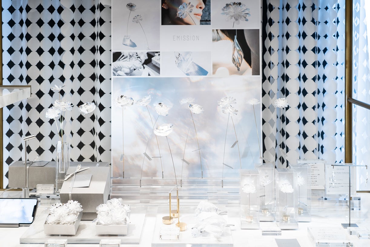 コレクションの発表にともない、資生堂銀座本店「SHISEIDO THE STORE」にてEMISSION POPUPを開催中です。「Prism Drop」を直接お手にとってご覧頂けるほか、プリズムによるフラワーアート「Prism Flower Collection」も展示販売しております。ぜひこの機会にお立ち寄りいただき、自然美が凝縮された光のアートをお楽しみください。