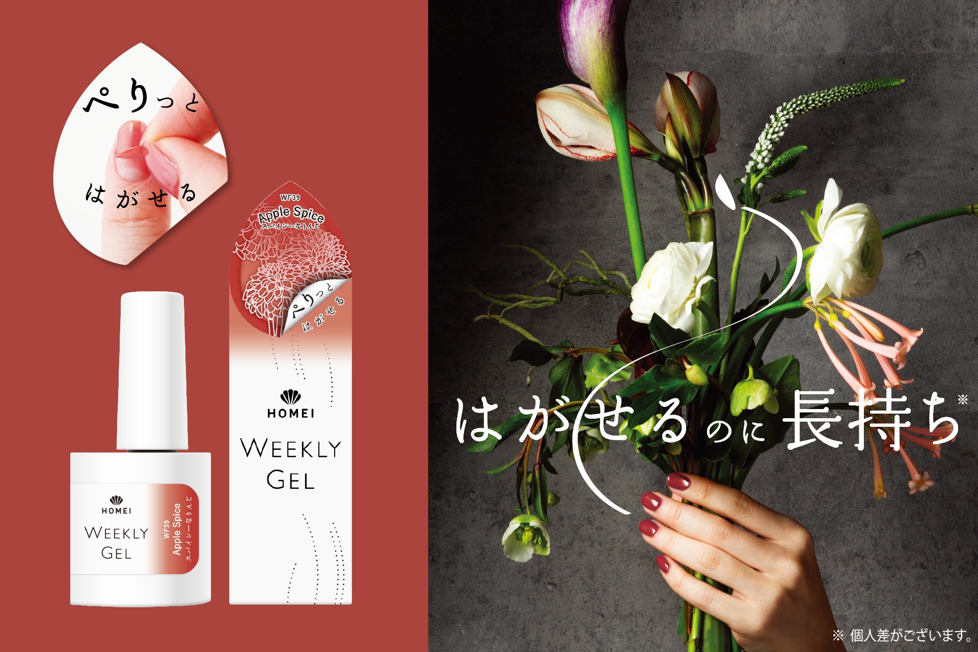 「ぺりっとはがせる」HOMEIウィークリージェルに、秋冬の新色が登場。自然の豊かさや美しさを感じさせる特別なコレクションです。
