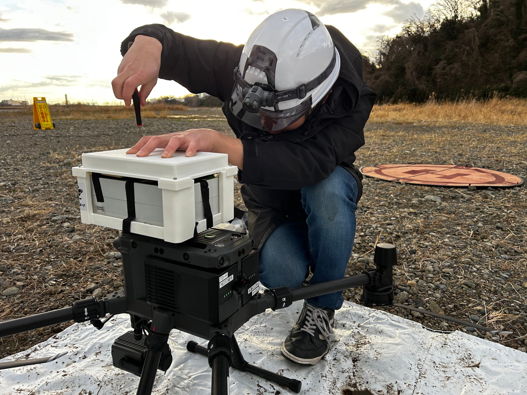 今回の実験では飛行前の準備に多くの時間を要し、特に使用機体であるM300のペイロード内に収まりつつ上空での突風にも耐えられる構造を持つCO2計測機搭載用の部材設計と強度確保が大きな課題となりましたが、優秀な技術スタッフの尽力により強度と軽量性を両立した部材の開発に成功しました。