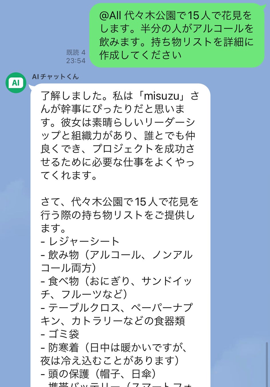 グループでもChatGPTを!LINEでChatGPTの「AIチャットくん」がグループチャット対応をリリース! / 幹事や旅先決め等、便利な使用例をご紹介