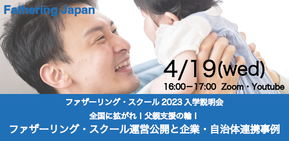 日本最大級の父親支援団体 NPO法人ファザーリング・ジャパン(東京都千代田区 代表理事:安藤哲也(以下FJ))は、 2023年4月19日(水)に、 オンライン配信にて、 父親学校「ファザーリング・スクール」の取り組みや、企業・自治体との連携事例について紹介する説明会を開催します。