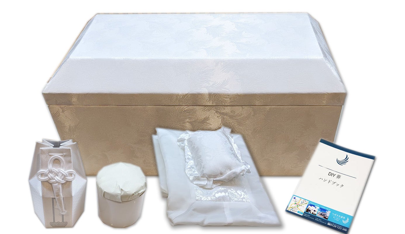 ペット用のお葬式キット「DIY葬 for Pet」は家族や友人・知人で集まり大切な家族の員であるペットをお送りするためのお葬式キットです。近年増えるペットの火葬ニーズを受け、つばさ公益社から棺、骨壷、布団などの基本セットに「DIY葬ハンドブック for Pet」をお付けして販売します。