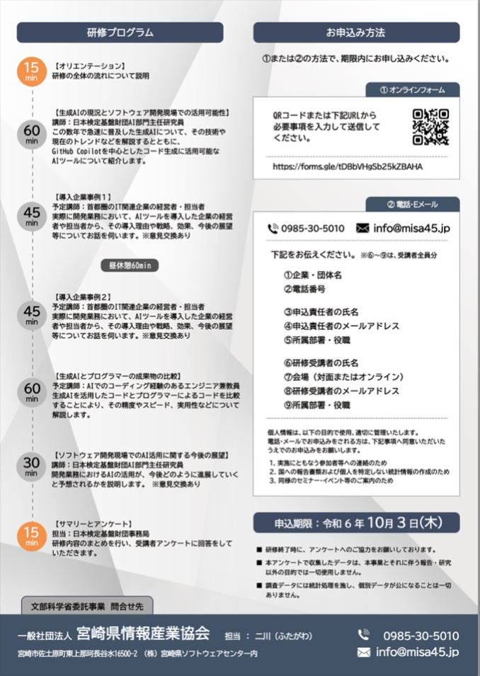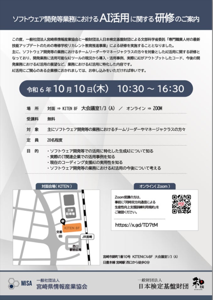 この研修会は、ソフトウェア開発や新規AI導入を検討する企業向けに、最新のAI技術とその実務での活用事例を紹介することを目的として開催されました。