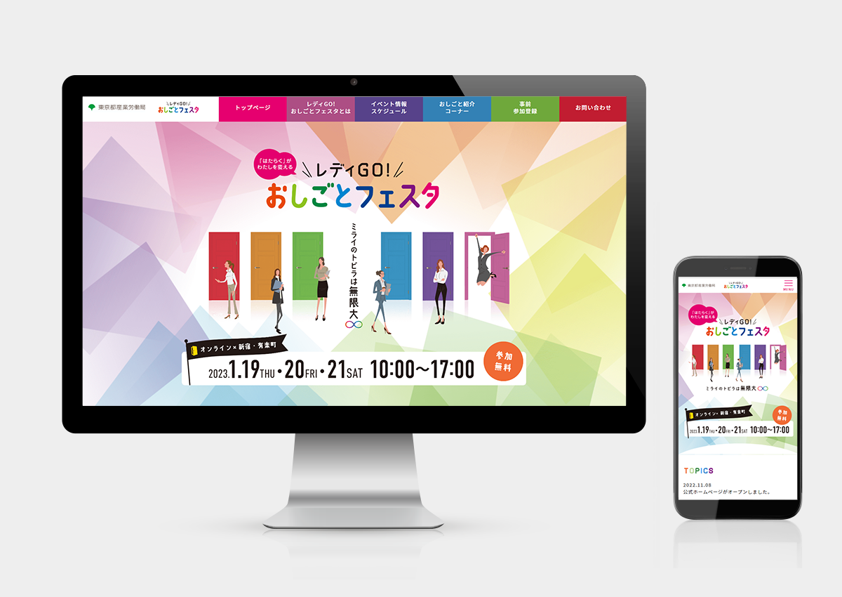 マムズラボ株式会社(本社:東京都港区、代表取締役社長:佐藤にの)は、東京都が主催する「女性しごとEXPO(イベント名:レディGO!おしごとフェスタ)」の公式ホームページ制作ならびにキービジュアル・ポスター・チラシ等の制作を担当いたしました。