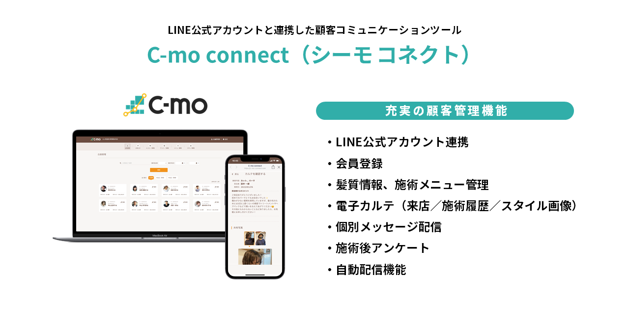 このようなローカルビジネスの課題を解決し、固定客化を促進する顧客コミュニケーションツールとしてC-mo Connect(シーモ コネクト)が誕生しました。