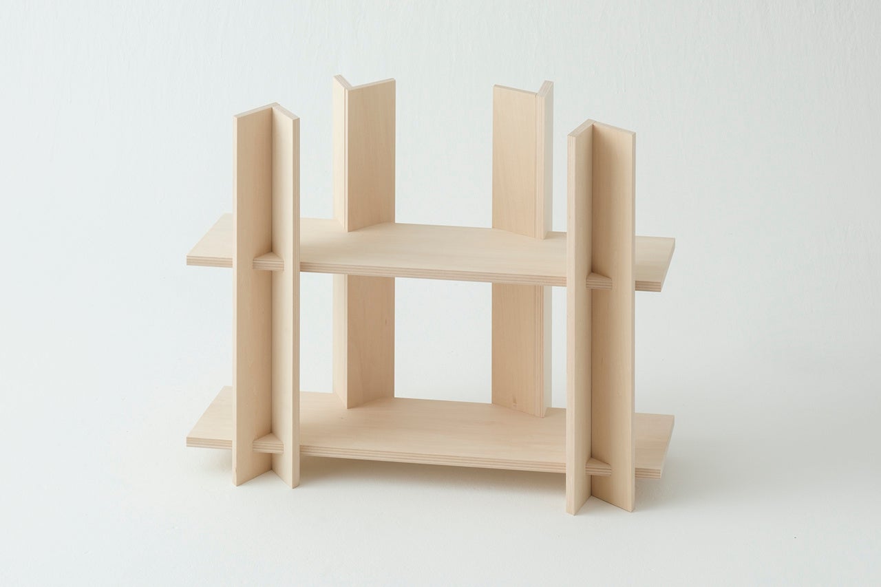 KODACHIには北海道産のシナ合板を使用しています。シナノキは日本固有種で、北海道に多く自生しています。無垢材ではなく合板を選んだのは、木材の伸縮が少なく、棚などの組立式プロダクトに適しているため。また、TSUMIKIが無垢材を使い手仕事重視だったのに対し、KODACHIでは合板を選び機械加工を多く取り入れることで、熟練技術に過度に依存せず若手や新たな人材が関わりやすいものづくりに挑戦しました。合板の選択には、ものづくりの担い手を育て、日本の豊かな木の文化を未来へ手渡していきたいという希いが込められています。