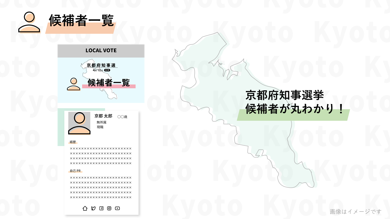 本サービスは、京都市選挙管理委員会の「啓発活動支援事業」の採択を頂いております。