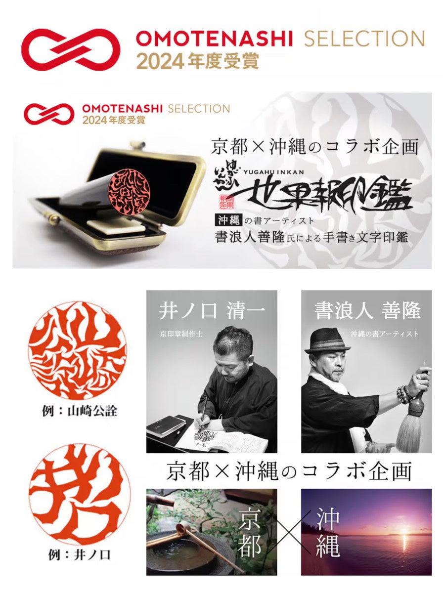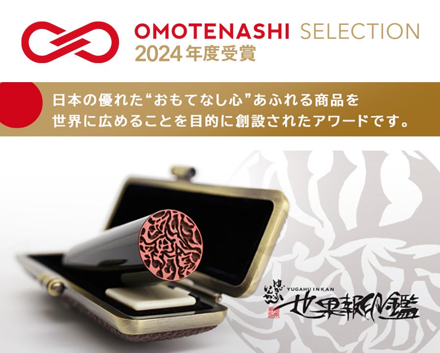 京印章制作士による手書き文字印鑑の販売を行っている有限会社印鑑の西野オンライン工房(所在地:京都府京都市伏見区、代表者:井ノ口 清一)が製造販売する「世果報印鑑(ゆがふいんかん)」が、『おもてなしセレクション2024』を受賞いたしました!!