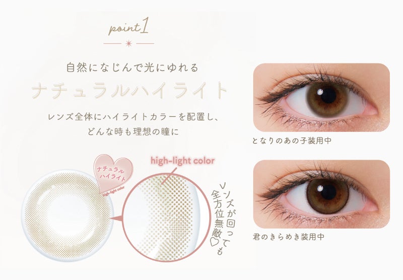 レンズ全体にハイライトカラーを配置し、どんな時も理想の瞳をキープ