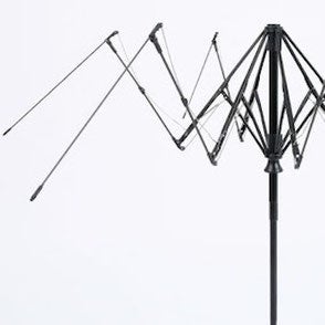 傘は軽さを求めると、ちょっとした風で傘フレームが折れてしまう場合がありますが、VERYKALフレームは、カーボンファイバーとアルミニウムをベストバランスで組み合わせ、風速15m/sにも耐えることができます。
