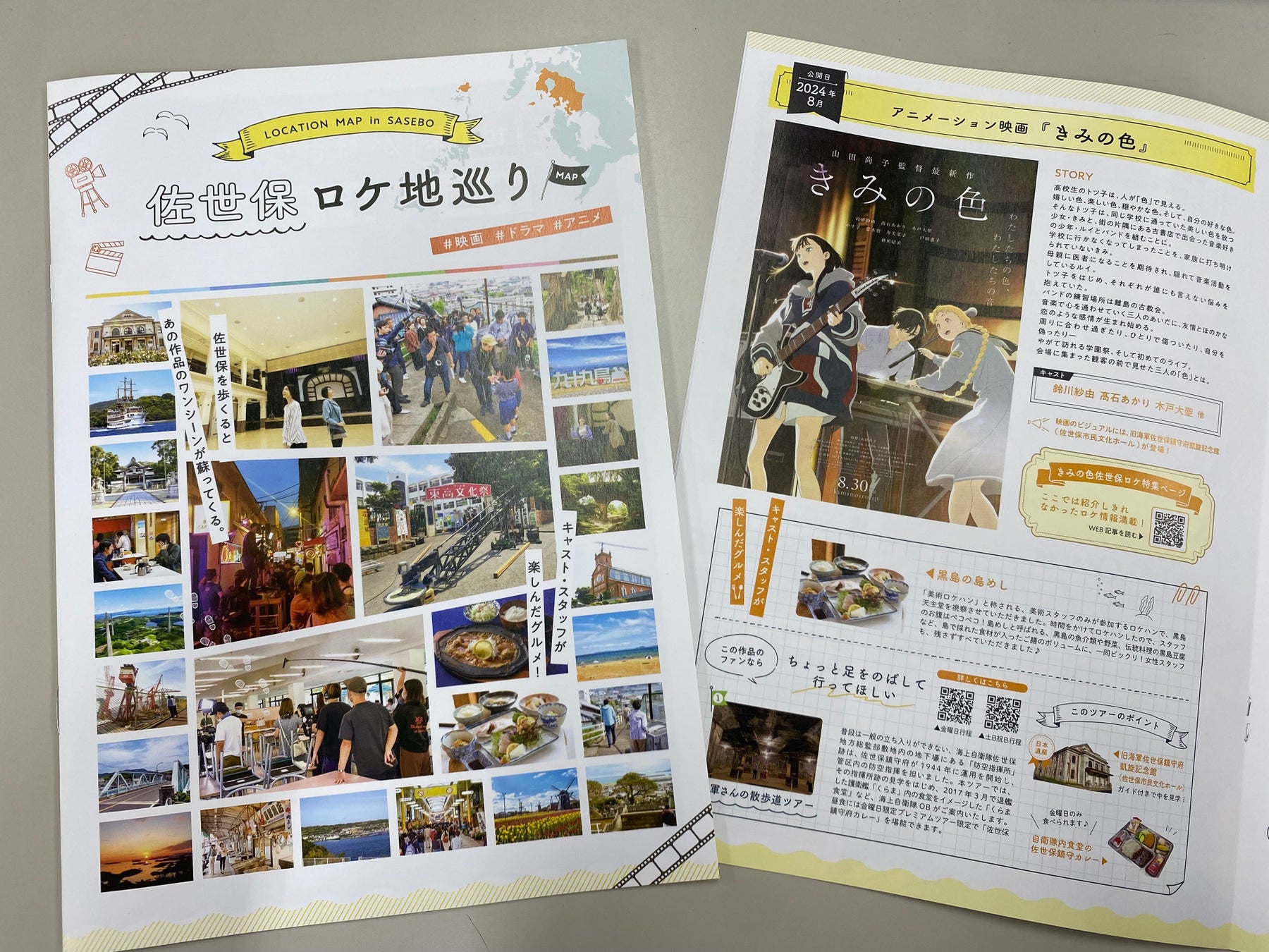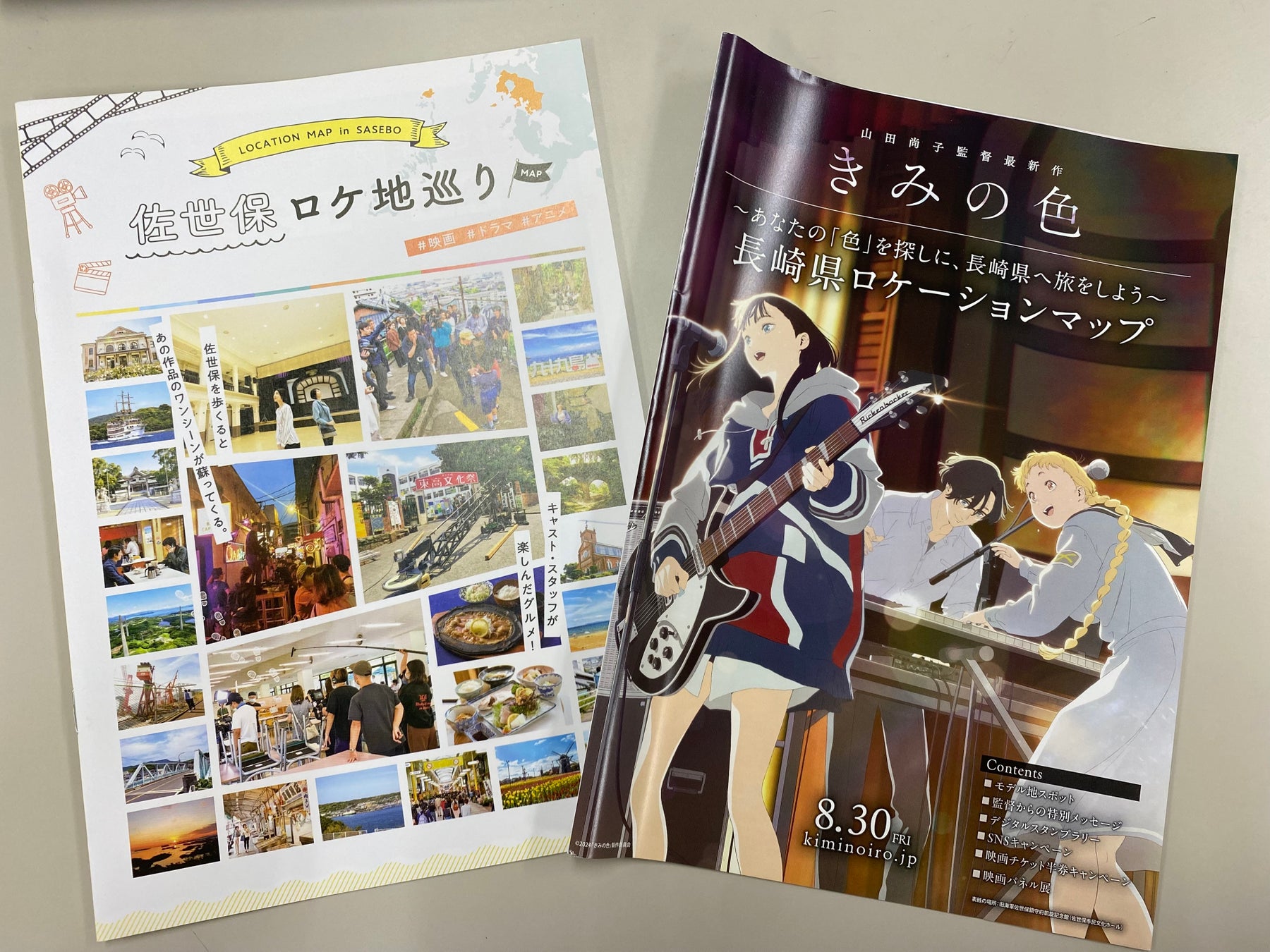 観光客誘致と受入整備のため、長崎県フィルムコミッションと連携し、観光客向けに今まで佐世保や近隣地域で撮影された過去作品のロケ地マップを制作しました!映画『きみの色』はもちろん、記憶に新しいドラマ「君が心をくれたから」やドラマ「17才の帝国、映画『坂道のアポロン』などここでしか手に入らないキャスト・スタッフが楽しんだグルメ情報なども満載!デジタルブックも展開します!