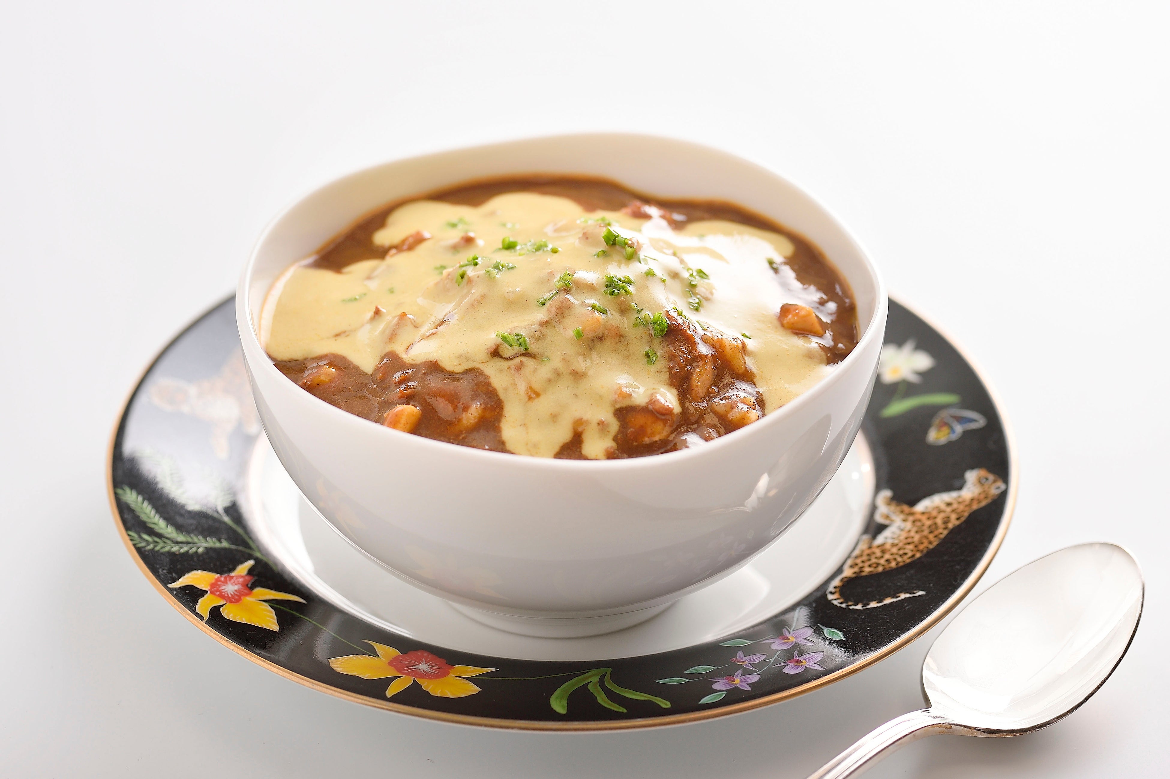 ・パウチされたカレーとポタージュを温め、ライスの周りに回しかけてご一緒にお召し上がりください。