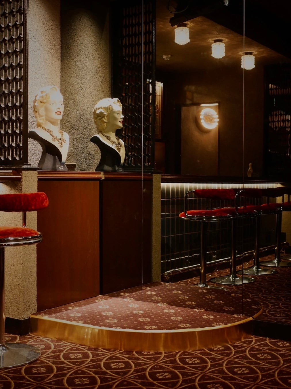 昭和バブルの全盛期に栄えた純喫茶、スナック、キャバレーの文化にフィーチャーし、全体として懐かしみのある空間を再現しながらも、現代におけるモダンなディテールを取り入れ、ただレトロにとどまらない新旧の共存を目指しました。