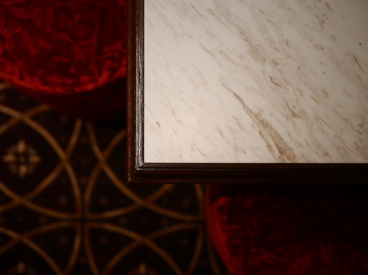 コストを惜しまず施されたステンドグラスや大理石の内装、異空間を醸し出す西洋の柄や照明。日本のわびさび文化とは逆行した、華美で異端なこれぞ昭和バブル期という装飾を可能な限り再現しています。什器やスツールなども1から設計し、全体を通して昭和感じる空間へ。