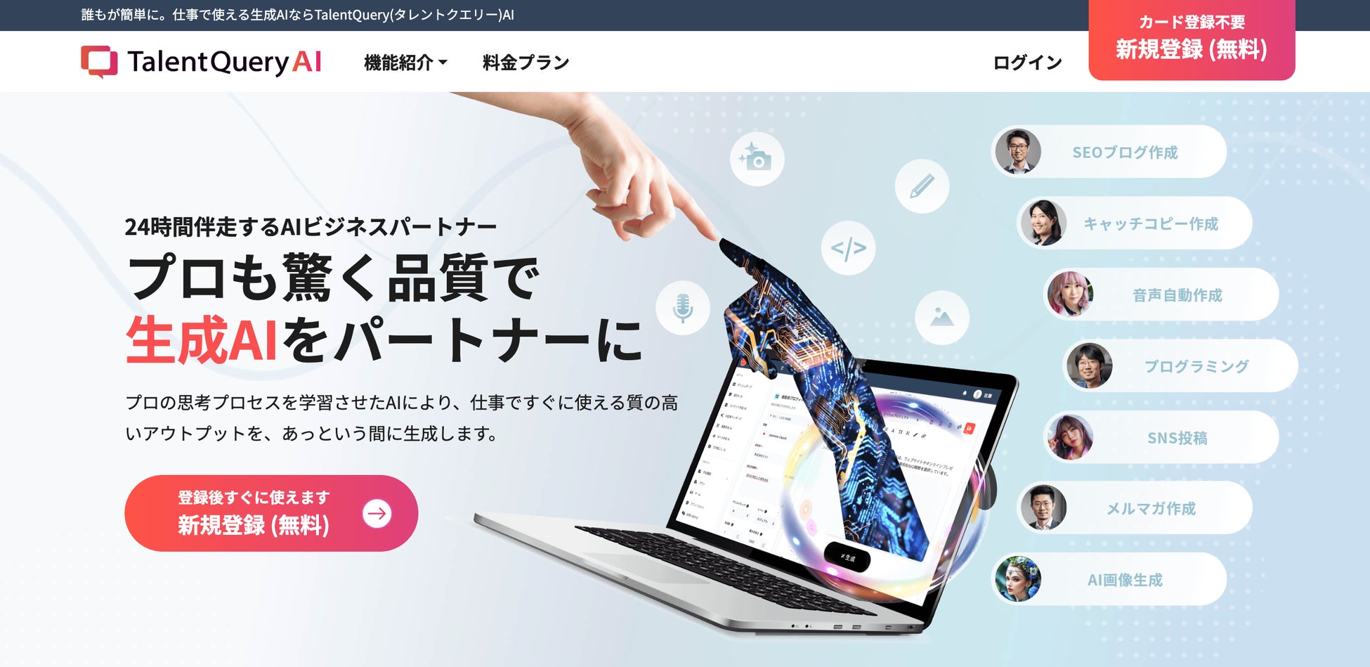 AI初心者にも分かりやすい!誰もが簡単に使える、オールインワン生成AIサービス『タレントクエリーAI』登場!