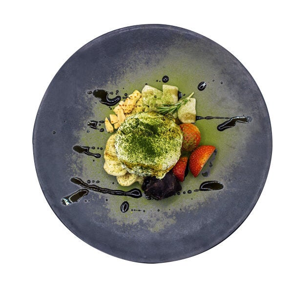 まるで洋風あんみつの様な未体験の味わいをお楽しみいただける商品です。ノンフライ製法の焼きココナツにもちもち求肥を盛りつけ、上質な黒蜜と濃厚な抹茶パウダーを振りかけています。