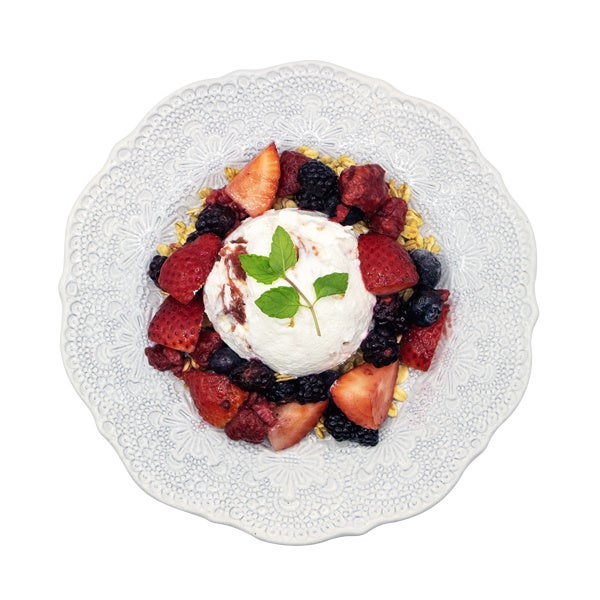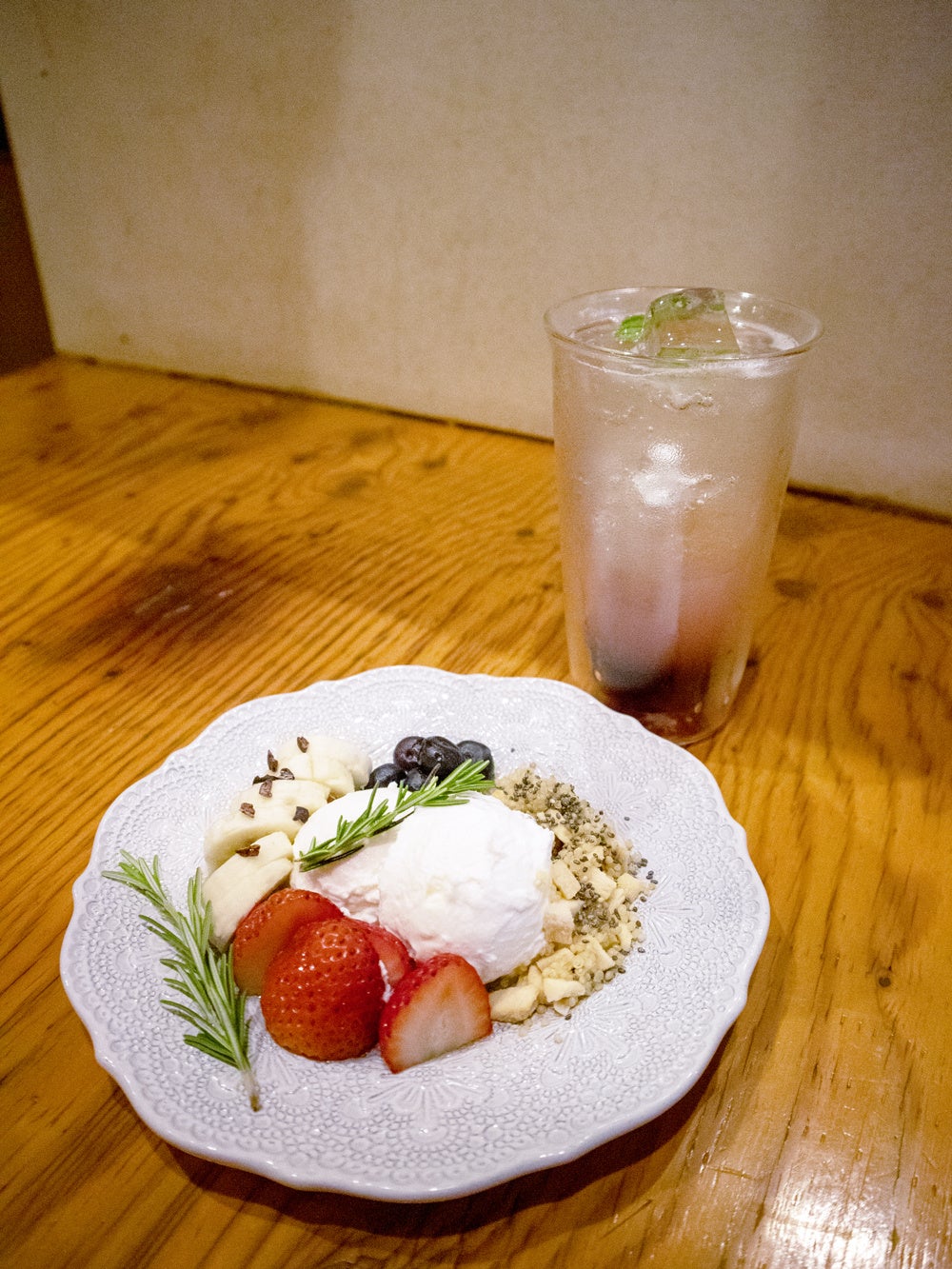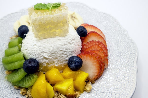 グリークヨーグルトにカラフルなフルーツをふんだんに盛り付けた定番となる商品。じっくりと丁寧に焙煎した無添加アーモンドや食物繊維豊富なグラノーラを使い、キレの良い後味、さっぱり系のハンガリー産アカシアハニーをかけています。