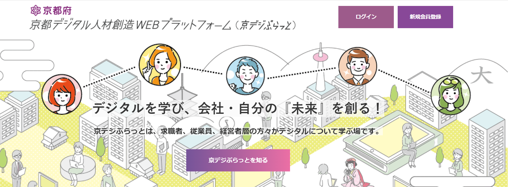 京都府では「京都の未来をつくる『DX人材育成×産業創発』プロジェクト」として、ものづくり産業、観光関連産業を中心に、労働集約型産業構造から知的集約型産業構造への転換と人材育成の取り組みが進められています。この度公開された京デジぷらっとは、デジタル社会においてすべての職業人に必要な素養であるデジタルリテラシーの修得や、府内企業のデジタル化などを目指し、中小企業や求職者に向けたコンテンツを無料で公開するWEBプラットフォームです。