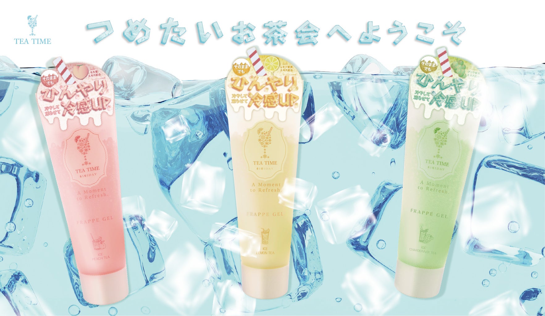 2024年はTEA TIMEシリーズ初となる春夏向け商品としてフルーツティーをテーマに、凍らせても使えるひんやりボディフラッペジェルを発売。