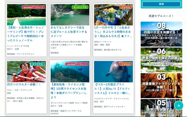 キャンペーンのスタートと同時に、特設サイトがオープンしました。体験プログラムを販売する体験プログラムの大手予約サイトを運営する3社(アクティビティジャパン、アソビュー、じゃらん※五十音順)などとデータ連携を実現。高知県内の体験プログラムを一元的に検索・予約することが可能になりました。複数のオンライン旅行代理店と連携したWebサイトの構築は、自治体としては全国的に大変珍しい取り組みです。