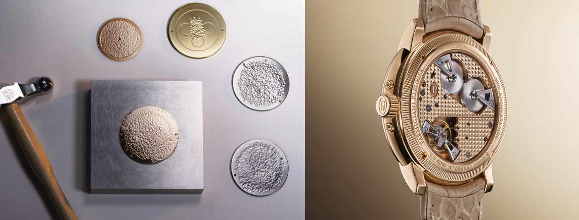 「トリック」からは、創設時のビジョンにオマージュを捧げながら、新たな装飾技術であるハンマード・ダイヤルや、ローズゴールドでできたムーブメントにはクル・ド・パリの貴重なギョーシェが手作業で施されています。ひとつひとつのディテールが、創業当時からメゾンを導いてきた哲学を反映しています。伝統への深い敬意と、高付加価値な職人の手仕事によってもたらされる機械的卓越性への、揺るぎない追求が、ひとつひとつの時計を生み出します。