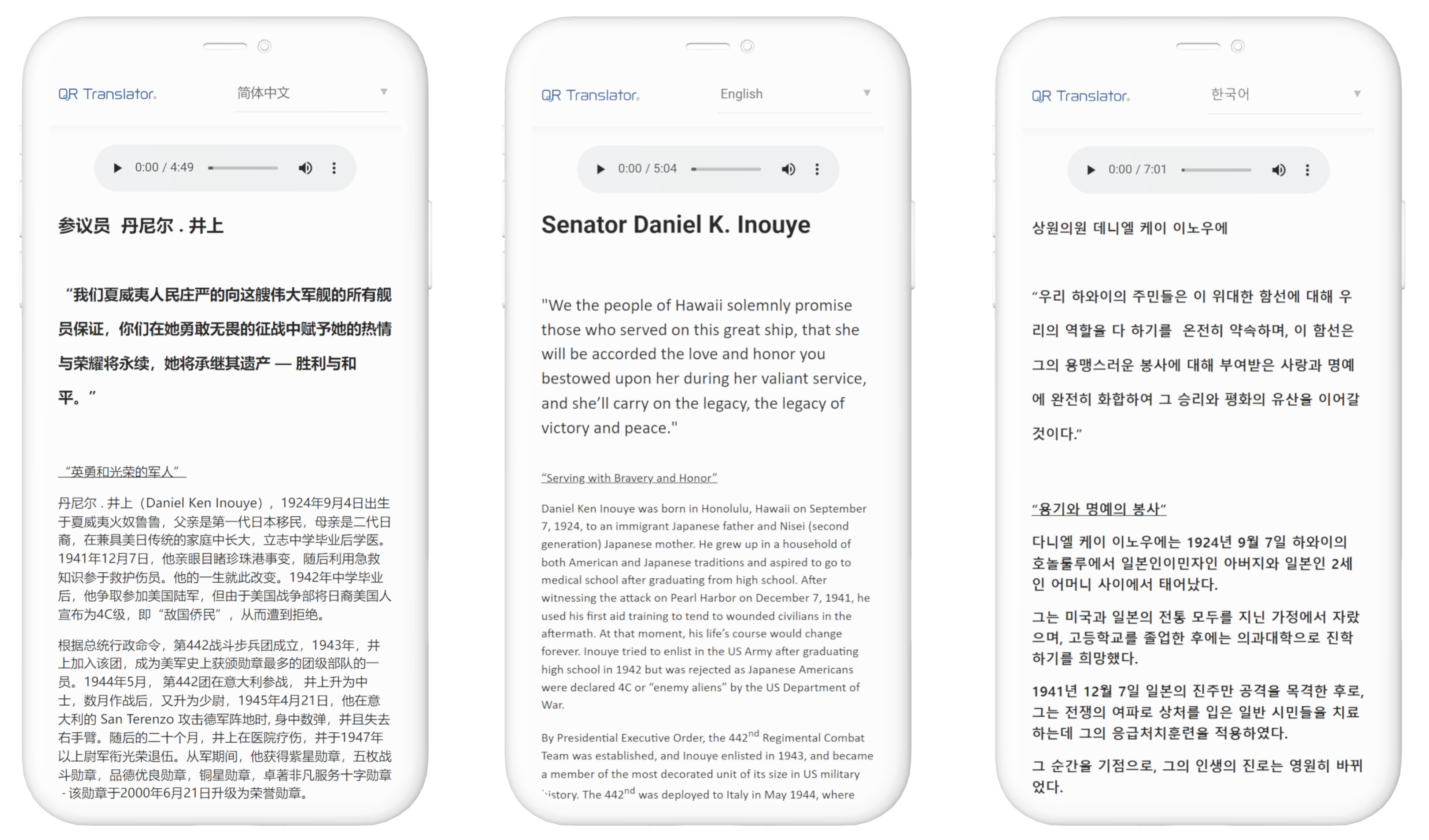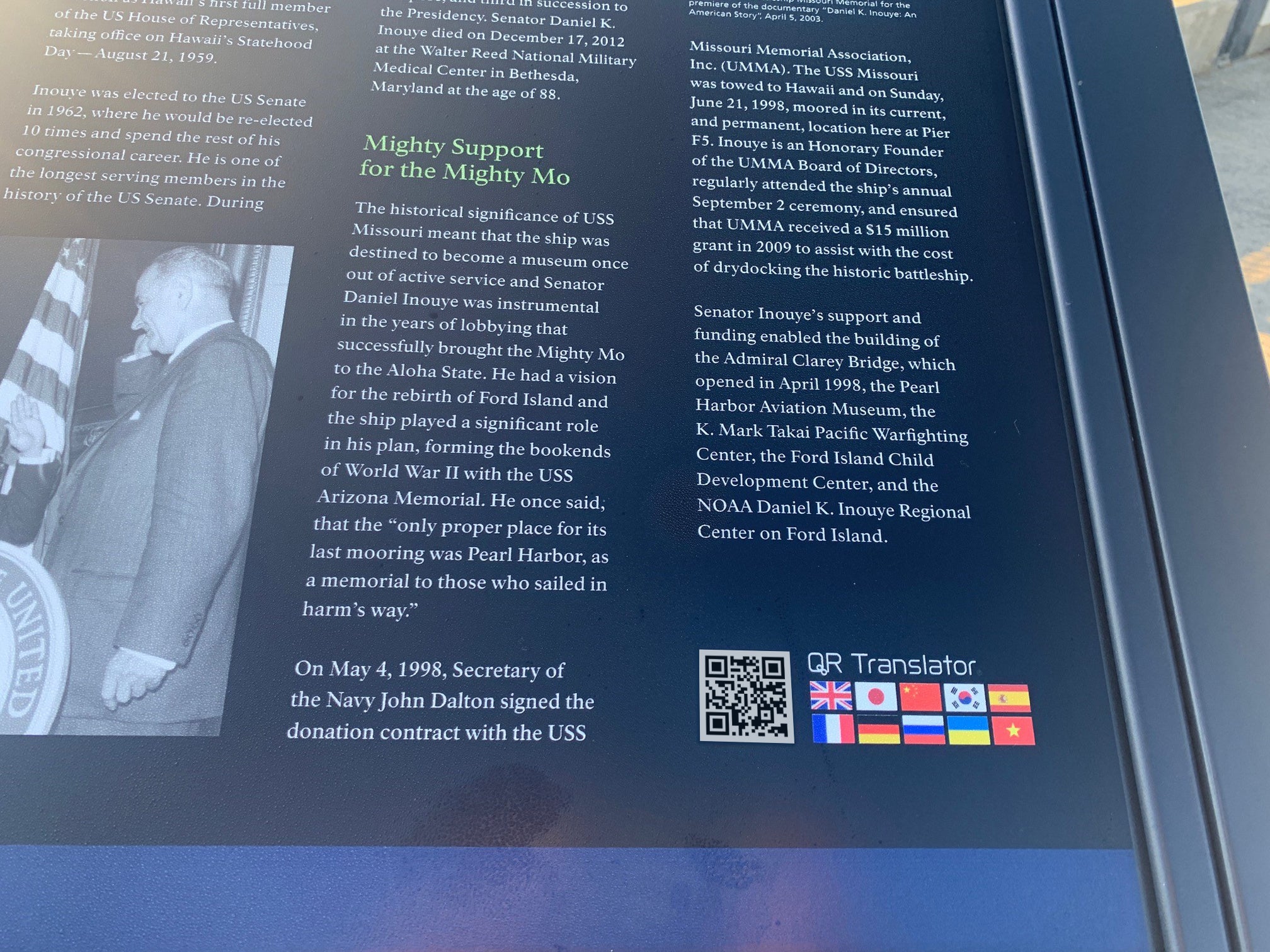 株式会社PIJIN(本社:東京都千代田区、代表取締役:高岡 謙二)は、同社が開発・運営を手がけている多言語表示サービス「QR Translator」が、ハワイ・オアフ島の「戦艦ミズーリ記念館(Battleship Missouri Memorial)」にて、一般公開されている甲板、艦内や埠頭の展示情報を多言語化するために導入される事を発表します。