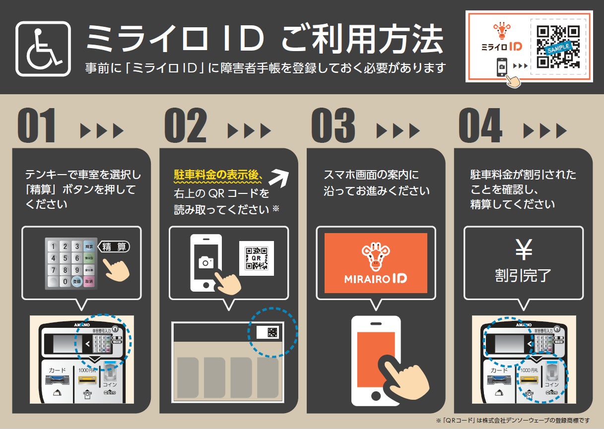 QRコードのスキャンで障害者割引が受けられる機能が登場!デジタル障害者手帳「ミライロID」の新機能により、無人の駐車場でも障害者割引が受けられるようになります