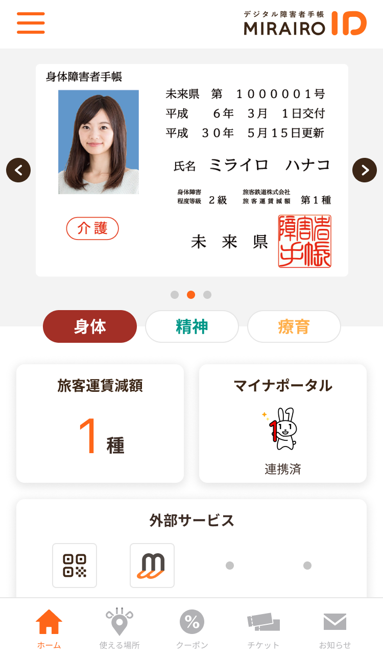 ※利用できるのは、ミライロIDに障害者手帳を登録している人に限ります。