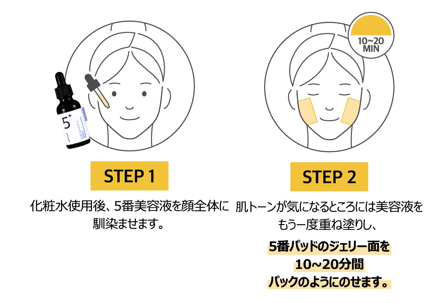 場面によって使い分けができる、塗るグルタチオンC*1「5番白玉グルタチオンC*1美容液」と、貼るグルタチオンC*1「5番白玉グルタチオンC*1フィルムパッド」の2種類からなるスキンケアシリーズです。