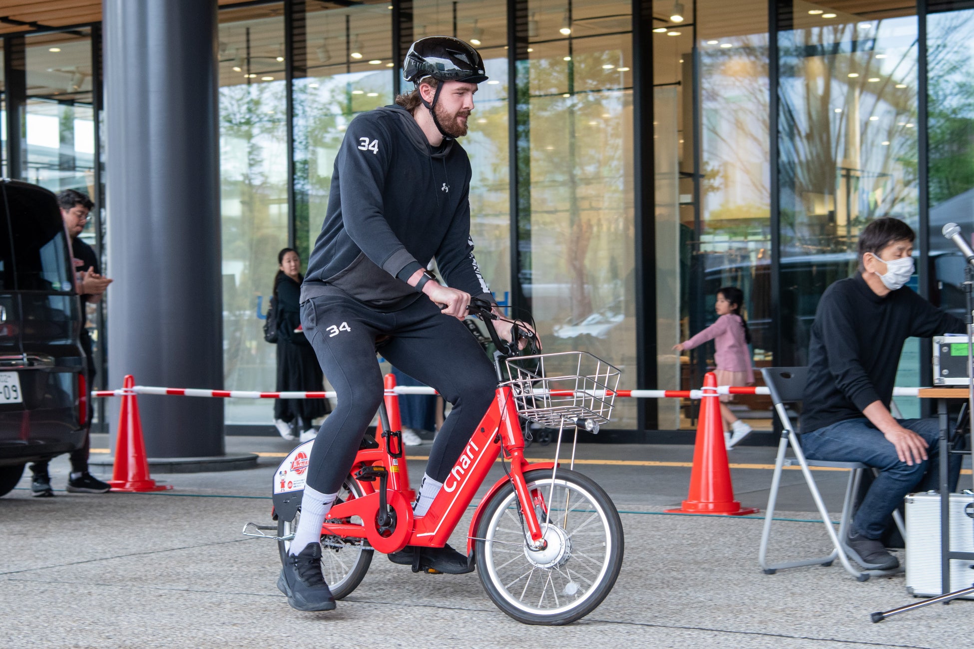 レギュラーシーズン残り4試合ですが、ぜひチャリチャリに乗って応援に来ていただきたいです。今回のように地域に貢献できるような取り組みは素晴らしいし、ぜひ参加してほしい。簡単に参加できる取り組みですし、とても楽しいと思いますので、ぜひ多くの方に参加していただきたいです。
