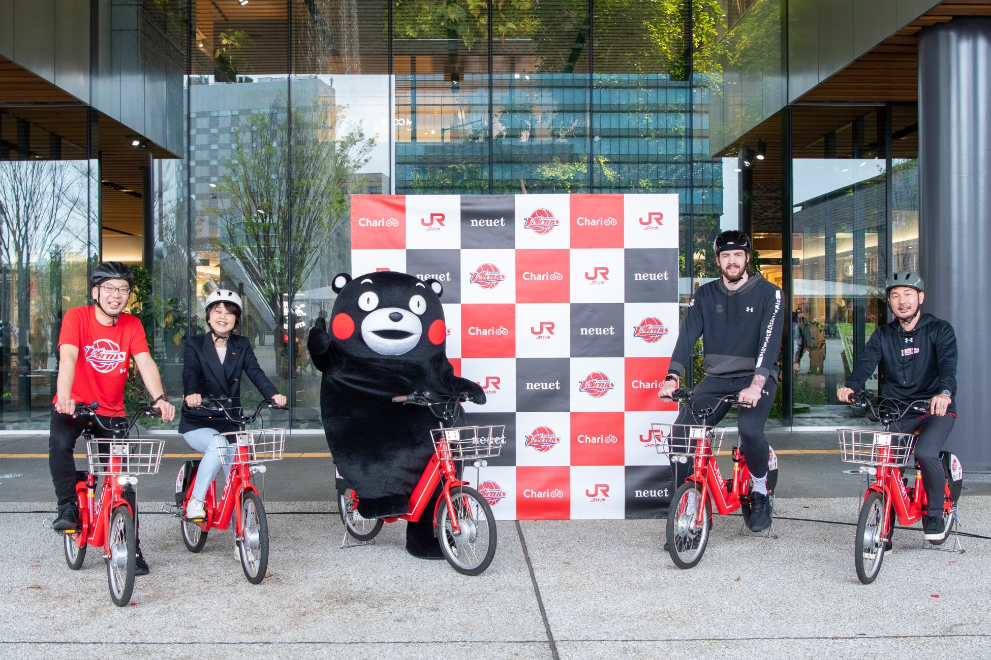既に2022年7月に熊本ヴォルターズとJR熊本シティ、JR熊本支社とでスポーツを通じた地域の活性化を目的に3社連携協定を結んでいます。試合の日には駅の社員が(ヴォルターズの)ユニフォームを着用し、熊本駅のアミュではヴォルターズファンに向けての特典を展開しています。また、neuet株式会社様とは、2022年12月に駅からの二次交通という鉄道会社の課題の解決、環境問題、観光を目的に連携させていただいています。既にチャリチャリのエリア内にあるJRの駅にはすべてポートを設置しています。県立総合体育館にポートができると、特に上熊本駅からはアクセスしやすくなります。たくさんの方が応援に駆け付け、ガンガン勝ちまくる!ということを目指していきたいです。また、Bたいです。リーグには九州に4チームがあります。熊本に応援に来ていただく際に、熊本をたくさん観光していただき