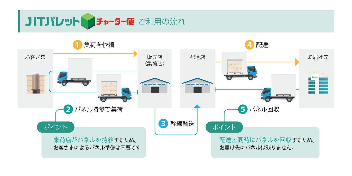 ボックスチャーター株式会社(本社:東京都千代田区、代表取締役社長:岩﨑納樹、以下「ボックスチャーター」)は、「物流の2024年問題」の解決と、持続可能な物流社会の実現を目指し、2024年11月11日(月)から標準仕様パレットを用いた小ロットで荷物の輸送ができる新商品「JITパレットチャーター便」を順次発売します。