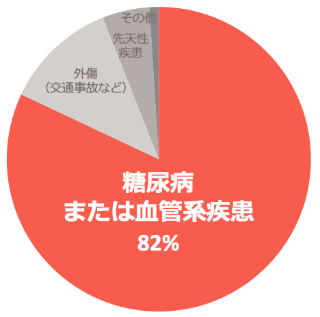 下肢を切断する原因の8割以上が糖尿病性壊疽などの血管系疾患が由来です(※3)。よって、義足マーケットとはすなわち、糖尿病のターミナルケアのマーケットであると言えます。