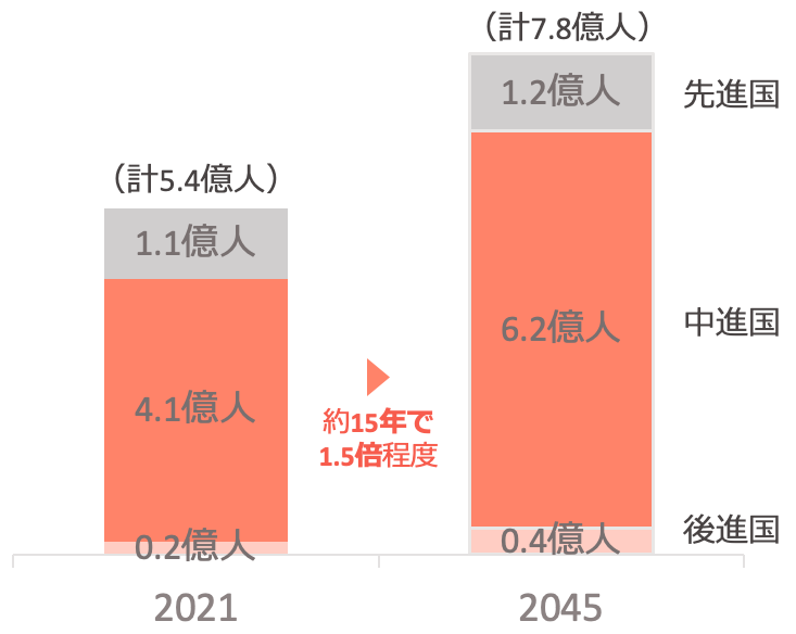 ゆえに糖尿病は開発途上国では「貧困病」とも言われ、患者数は増加の一途であり、2045年には7.8億人に達すると見込まれます(そして、その9割程度以上が、新興国・開発途上国の患者だと言われています)。