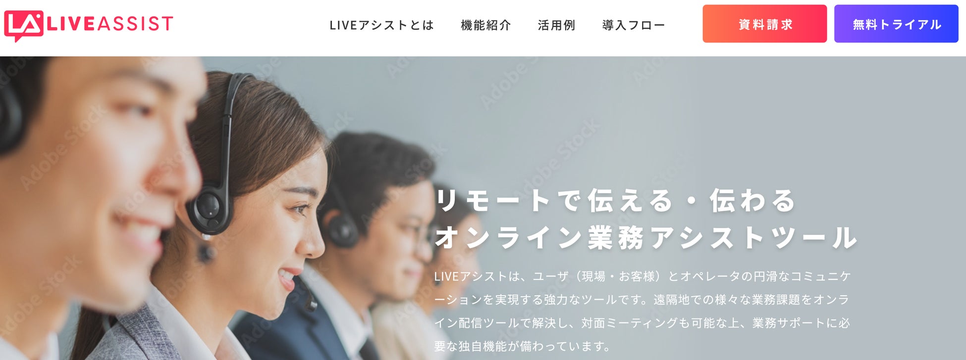 「Liveアシスト」はオンラインビデオ通話を用いて現場で発生する様々な課題を遠隔でダイレクトに解決するSaaSサービスです。またリモートでも付加価値の高いサ―ビス、CV、顧客満足度を向上させます。