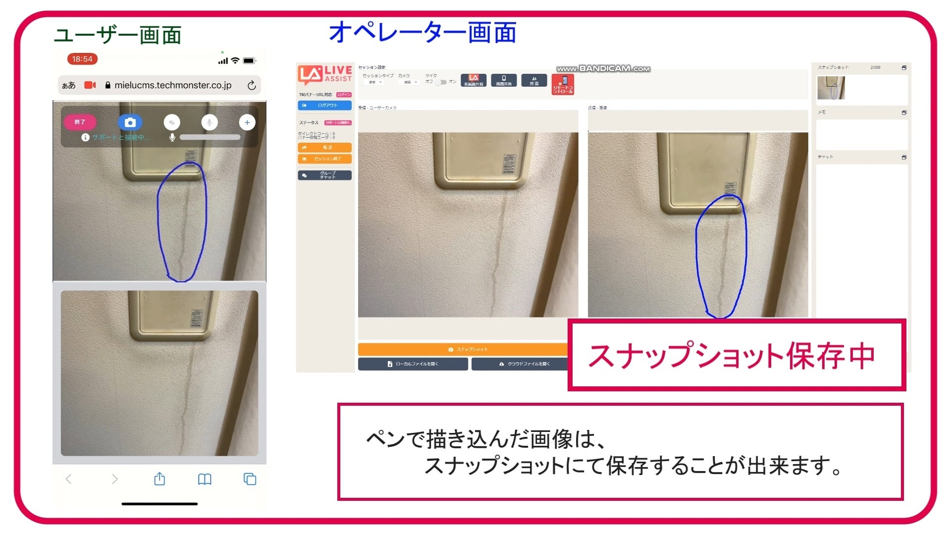 ・製品や現場をカメラで映しながらポイント部分を線で描いて説明できるので、お客様にすぐに理解していただけた。