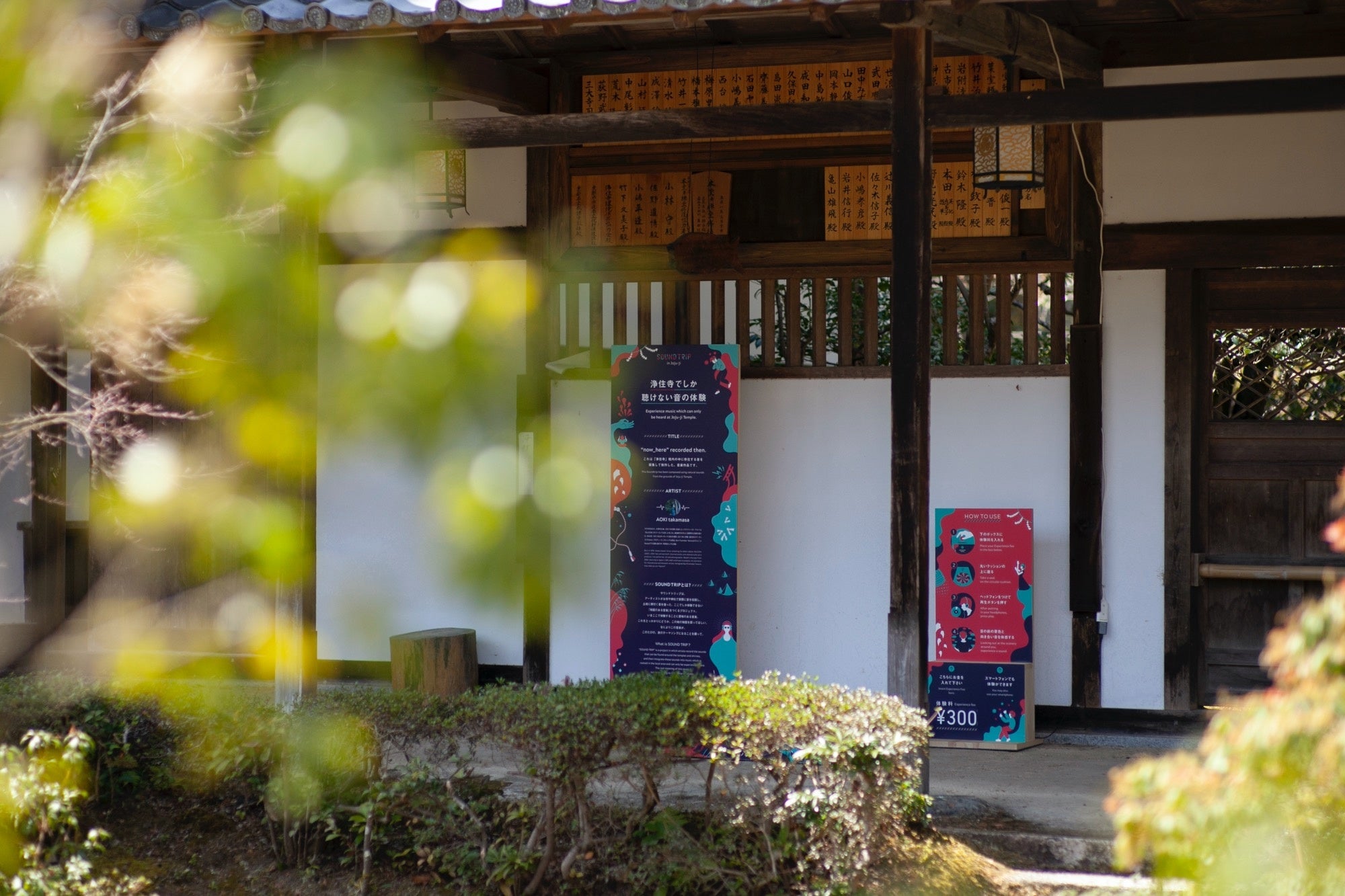 それぞれその寺社で流れる音、たとえば水の音や鳥の鳴き声、風に揺れる鐘の音などを収録し、その音を使いながらそこに行かないと聴けない音楽体験を制作。訪れる参拝者は、指定の場所で体験料(300円)を支払い、音楽を聴きます。