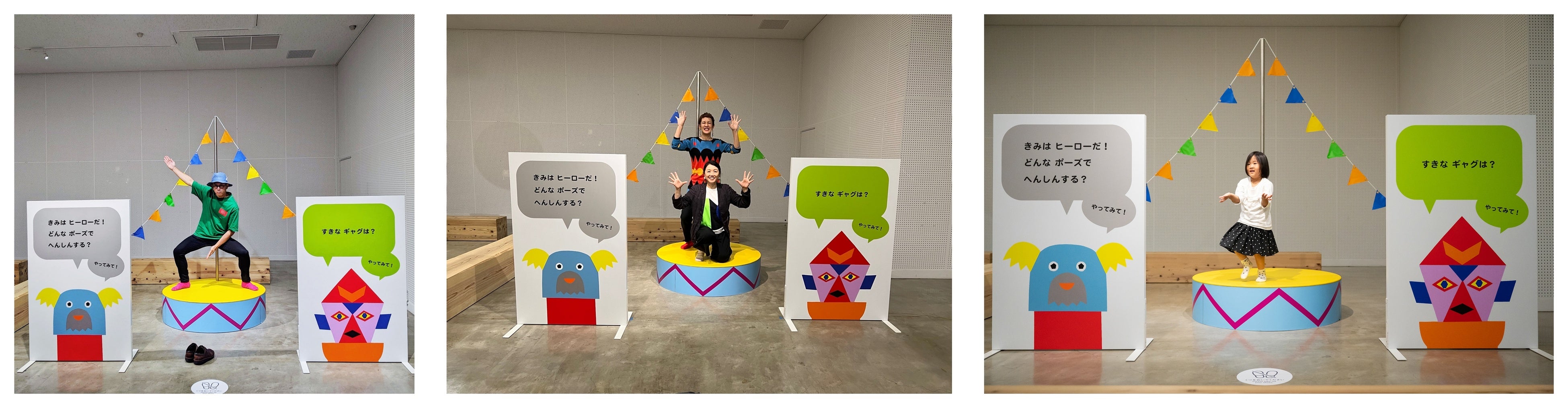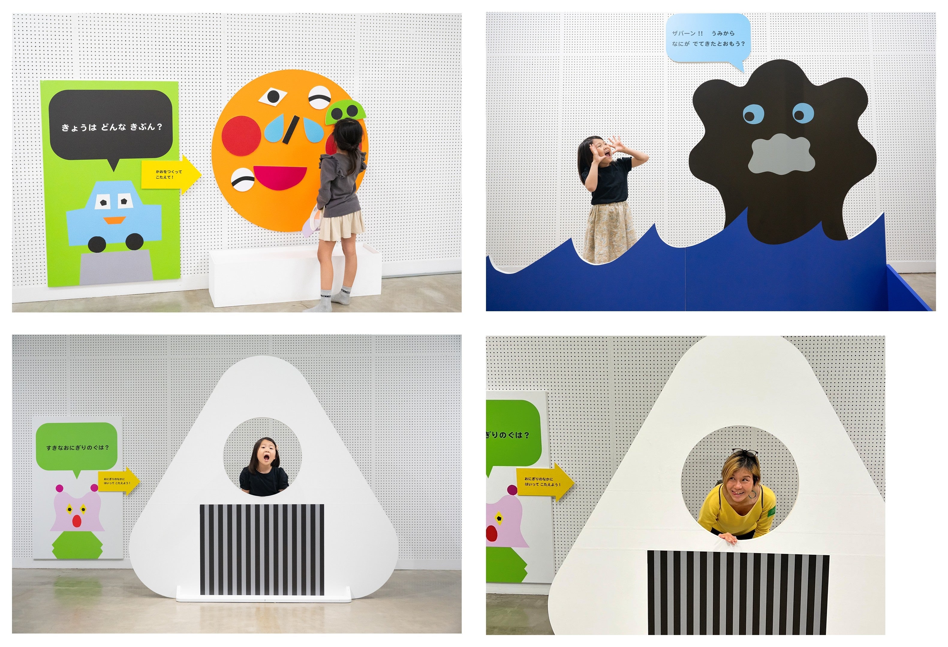 メイン会場となるアートホールには、「しつもん」のパネルを多数設置。tupera tupera の絵本原画コーナーや、絵本を手にとって閲覧できるコーナーがあります。さらに、遊びを通じて体験できるコーナーもあり、どなたでも楽しめる空間を提供します。