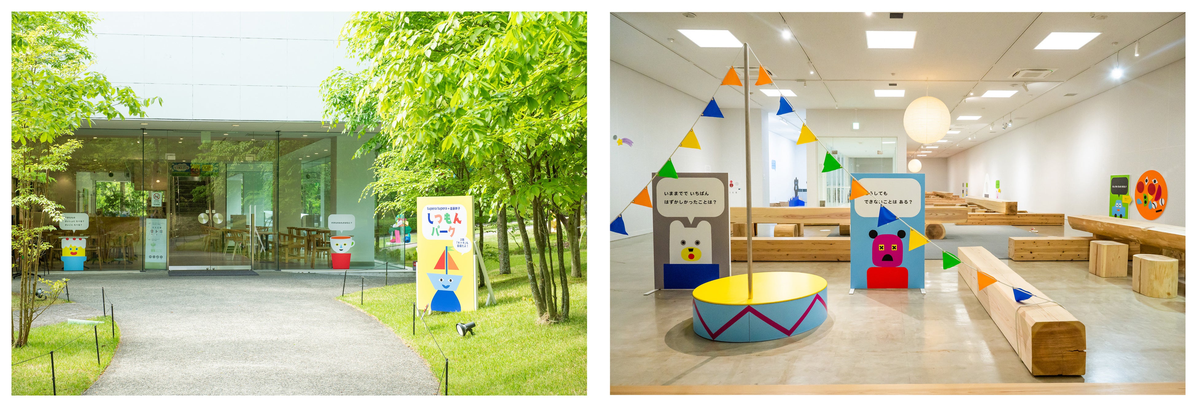 館内に設置されたtupera tupera 著「しつもんブック100(青山出版)」をベースにした100のしつもんに答えながら美術館をめぐる、“ 人と人”、“ 人と場所” がコミュニケーションでつながる、おしゃべりOKの参加型展覧会です。絵本の原画展示や子どもが楽しめる体験型アート作品も登場。また、絵本やグッズが充実したショップのほか、カフェではオリジナルドリンクなども展開。年齢を問わず屋内・屋外ともにエリア全体で楽しめる企画です。