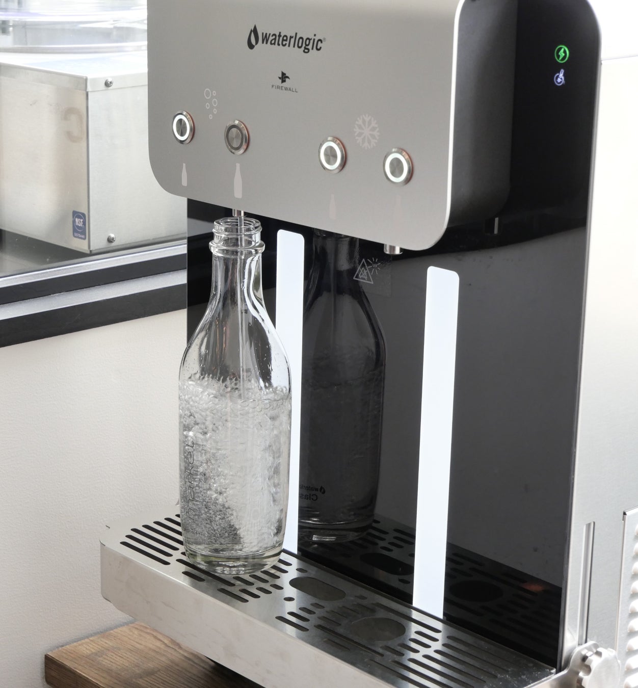 ●水道水を活性炭フィルターでろ過し、冷水や炭酸水を連続して大量に供給可能