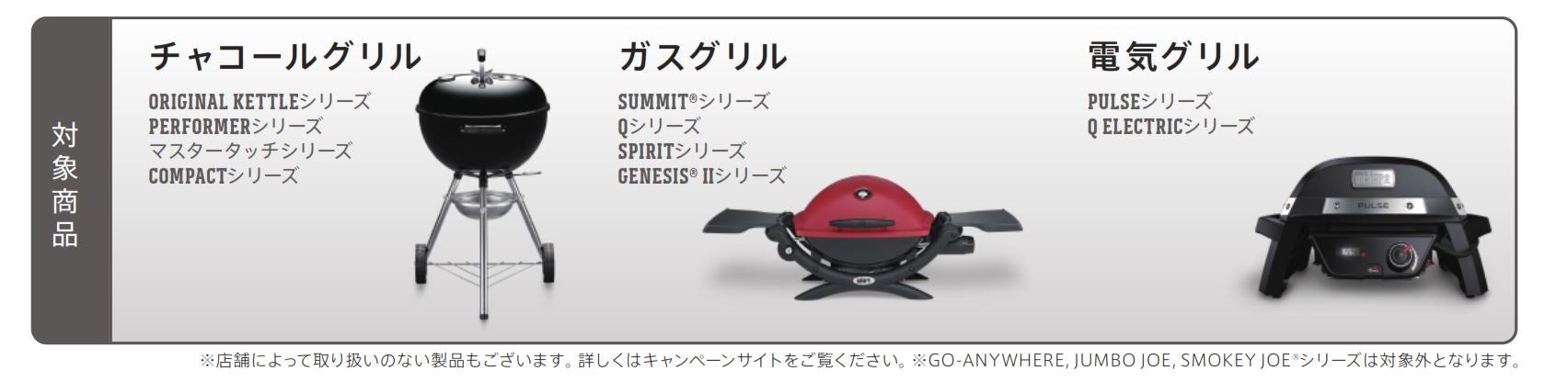 - 対象製品 下記およびキャンペーンページ記載の対象製品一覧をご確認ください。 ※GO-ANYWHERE, JUMBO JOE, SMOKEY JOE®シリーズは対象外となります。