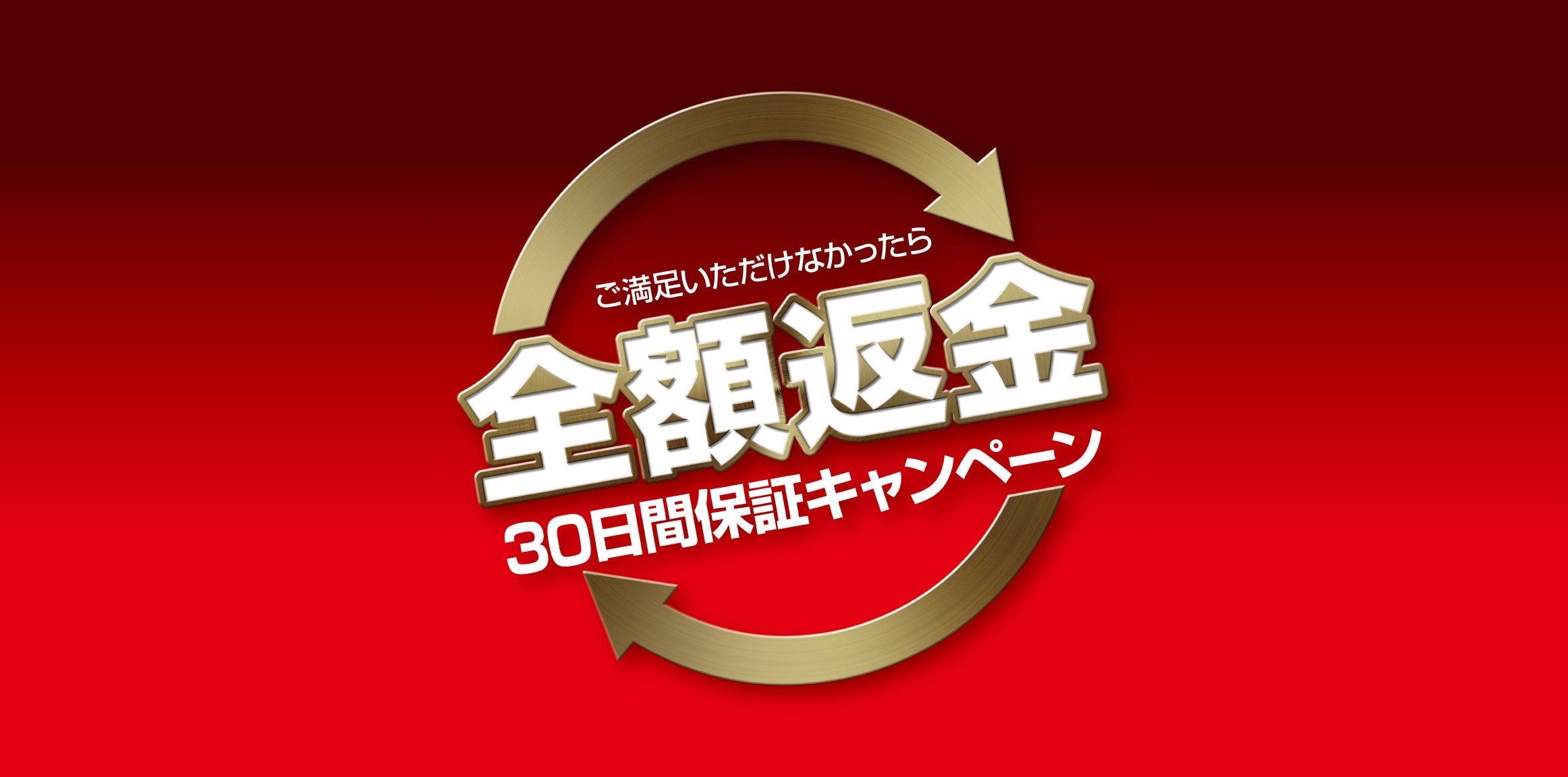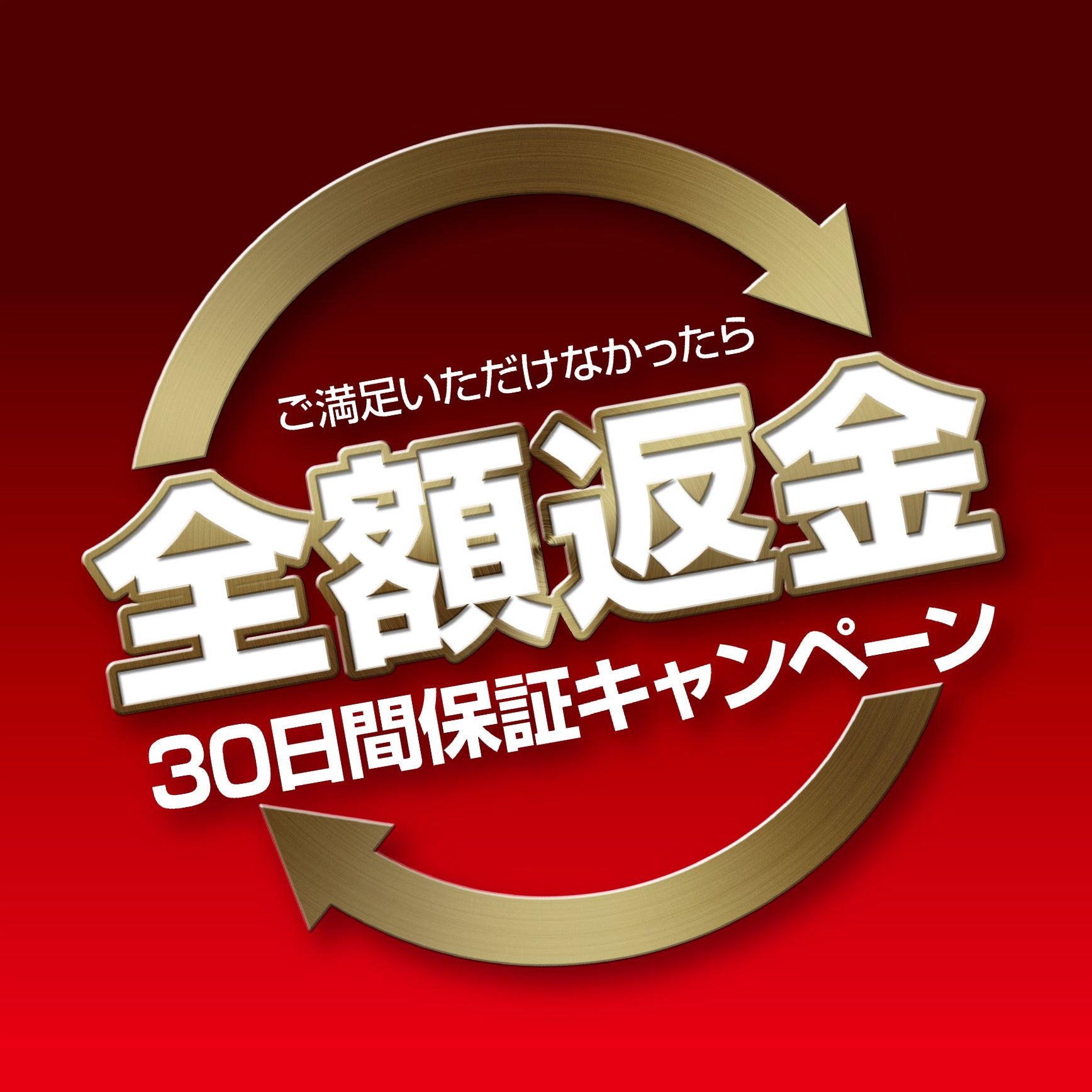- キャンペーン内容 製品をご使用いただいたきご満足いただけない場合、ご購入より30日間全額返金を保証いたします。