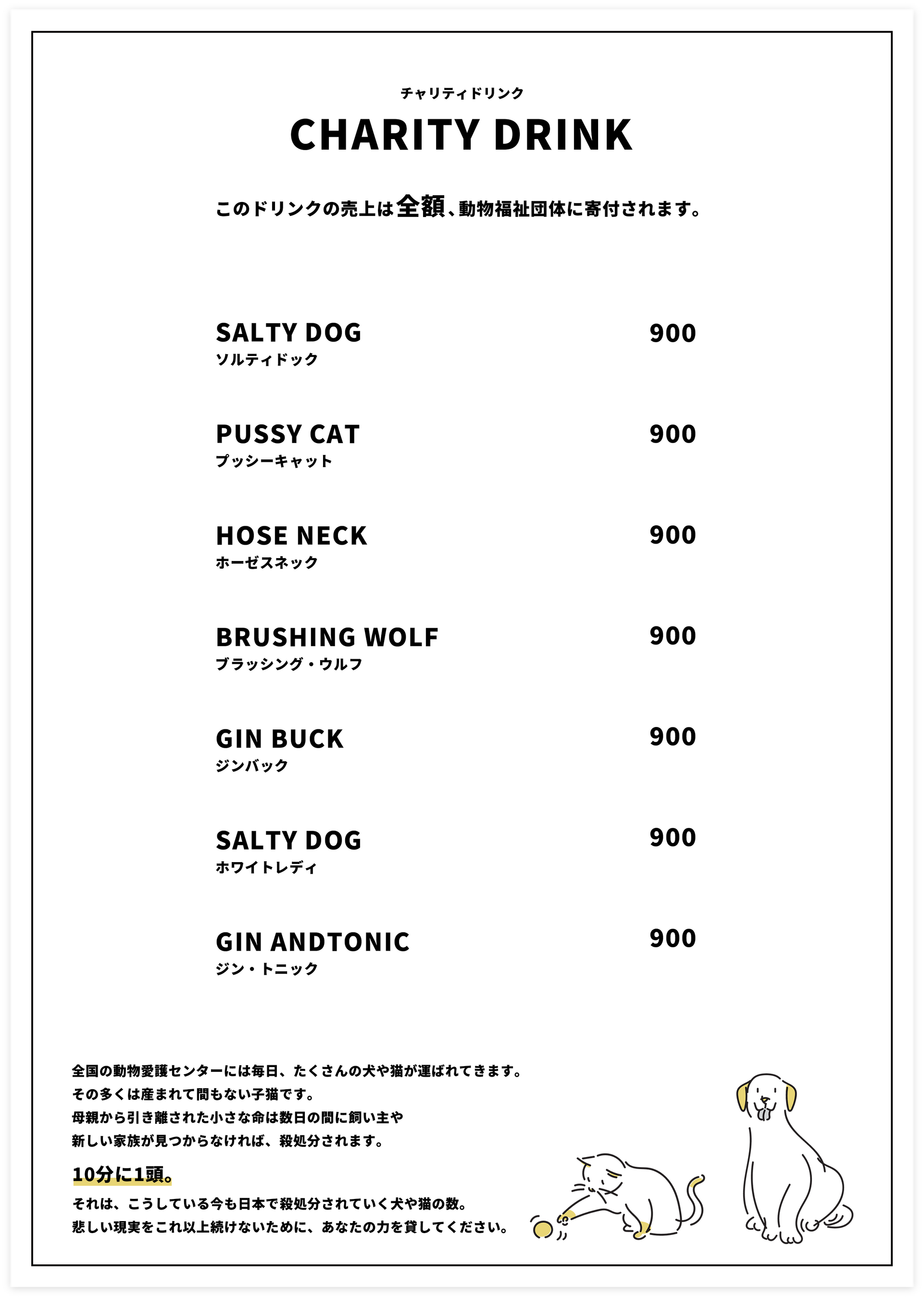 チャリティーメニューの提供を始め、動物福祉向上に寄与する取り組みを微力ならが進めてまいります。