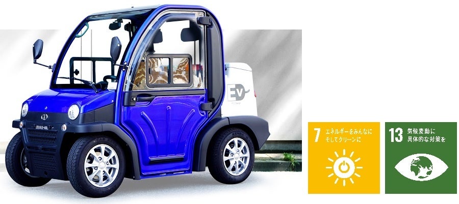■特徴:ラスト1マイルモビリティーとして使える省エネルギー低コストの超小型電気自動車。ソーラー充電、双方向電力供給システム等のオプションも。双方向充電システムは、停電等非常時に超小型EVから家電製品に電力供給可能。