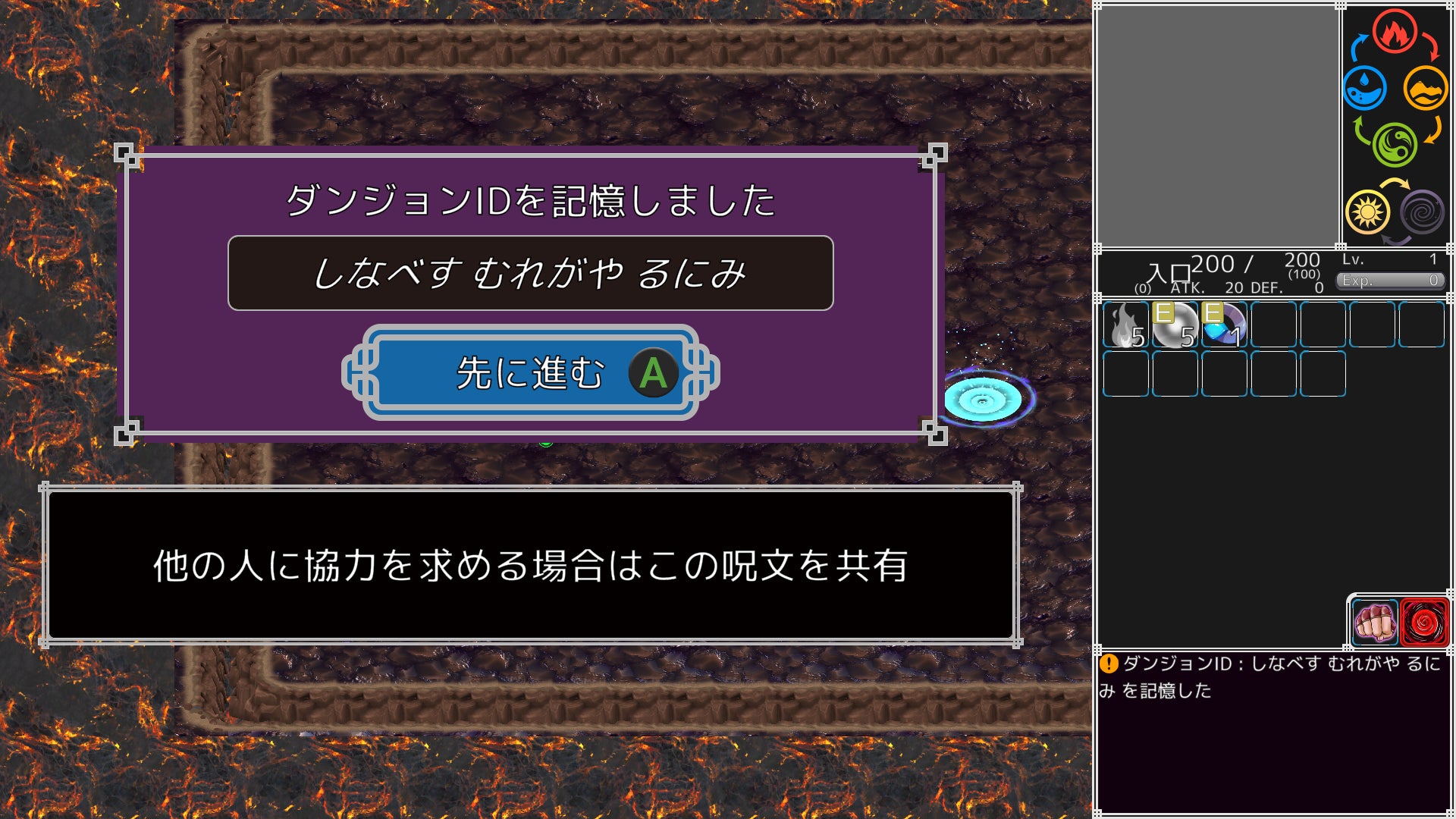 メインプレイヤーのダンジョンID(文字列)をチャットなどで共有すると、誰でもそのダンジョンをプレイでき、メインプレイヤーをサポートすることができます。