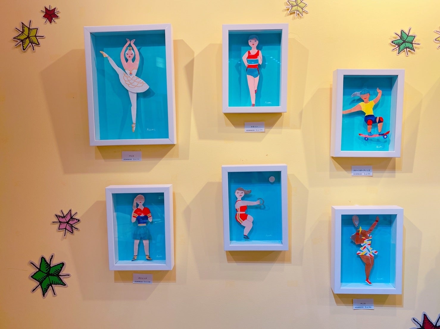 原画はムーンパンツのパッケージイラストと、アラスカ(現在アラスカ在住です)のイラストです。全てアルミ板に書かれ、優しい色合いで、見ているだけで気持ちが落ち着いてきます。